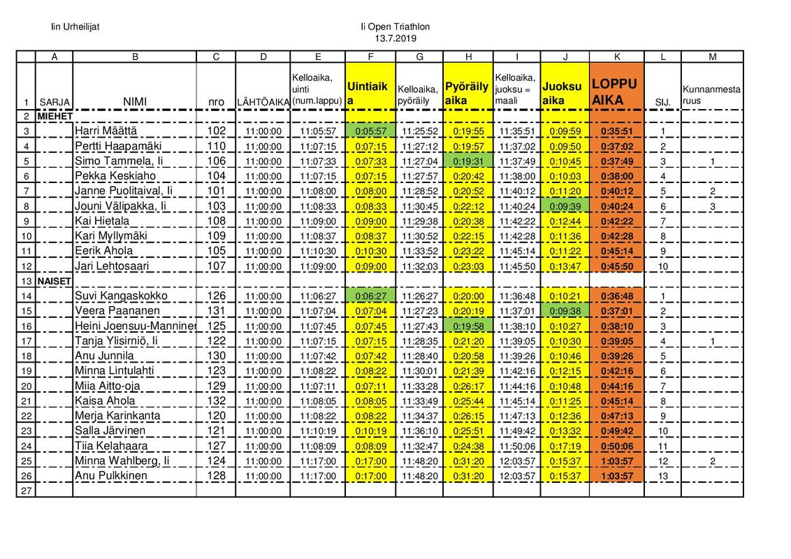 Ii Open Triathlon 13.7.2019 TULOKSET